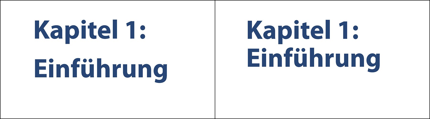 • Ästhetische Auszeichnungen sind unauffälliger, dezenter und passen sich mehr in das Gesamtbild Ihrer Gestaltung ein. Beispiele für ästhetische Auszeichnungen sind: Kursive, Kapitälchen, Versalien. Nutzen Sie diese beim linearen Lesen, für Skripte und Handouts mit großen Textmengen.