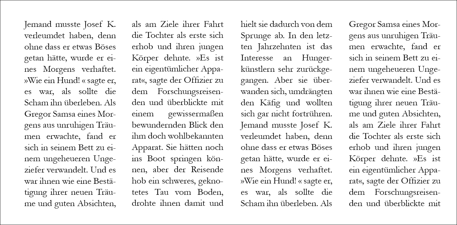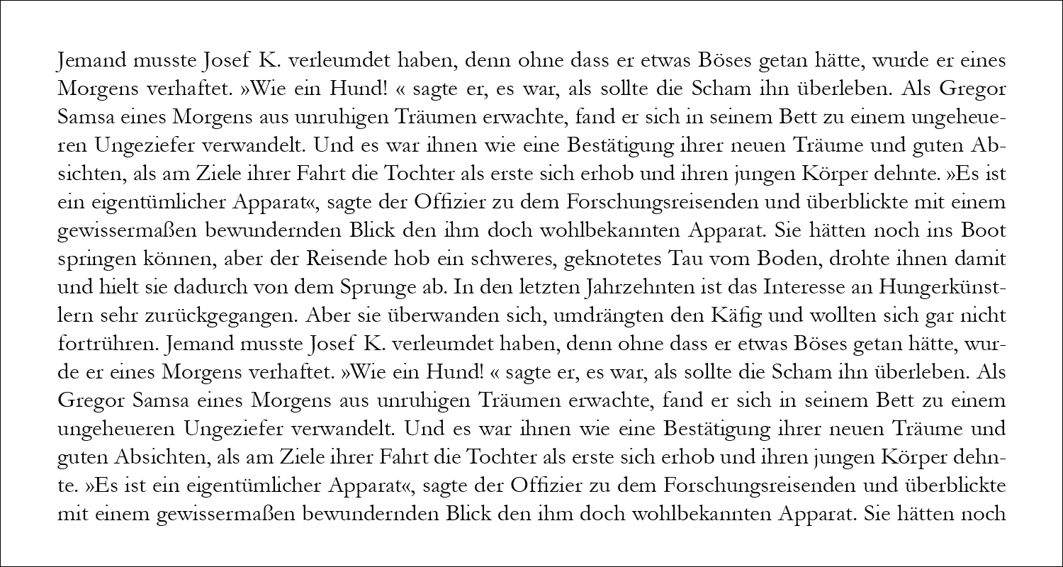 Zeilenlänge zu kurz (Garamond, 11 Pt, ca. 25 Zeichen pro Zeile)