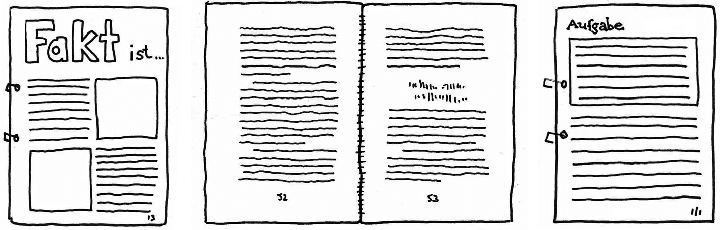 Scribbeln Sie! Nehmen Sie ein DIN-A4-Blatt und einen Bleistift, ggf. Lineal und Geodreieck, und machen Sie verschiedene kleine Skizzen zu einem Ihrer Lehr-/Lernmaterialien: Wie kann das Gesamtlayout, die Dramaturgie aussehen? Wo wollen Sie Abbildungen, wo Texte platzieren? Wie viel Raum sollen Überschriften einnehmen?