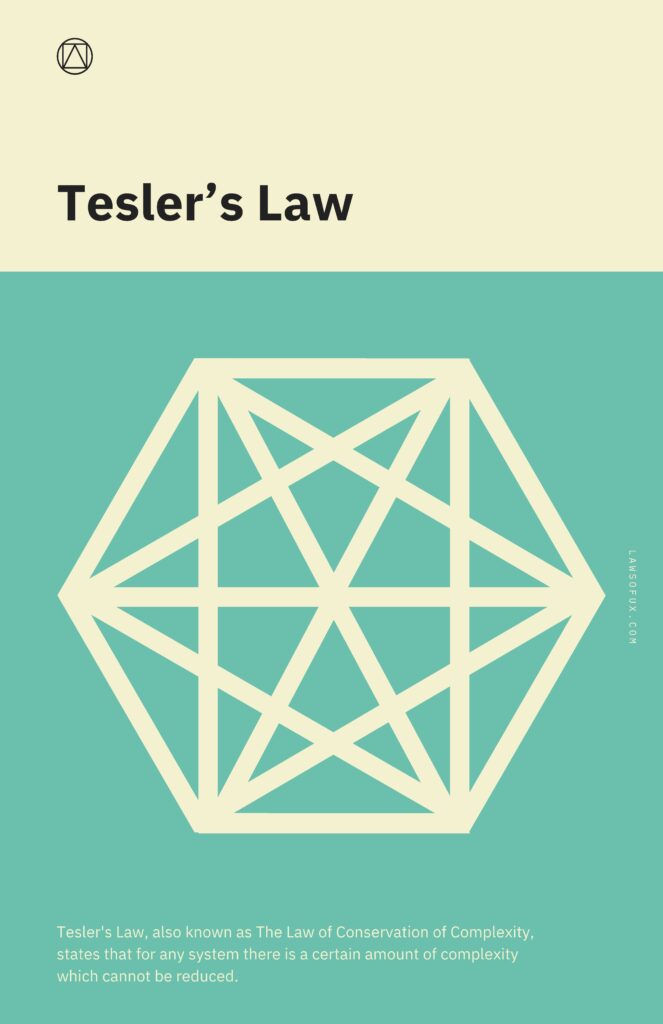 Teslers Gesetz oder auch Komplexitätserhaltungsgesetz besagt, dass jedes System einen gewissen Komplexitätsgrad aufweist, der nicht verringert werden kann.