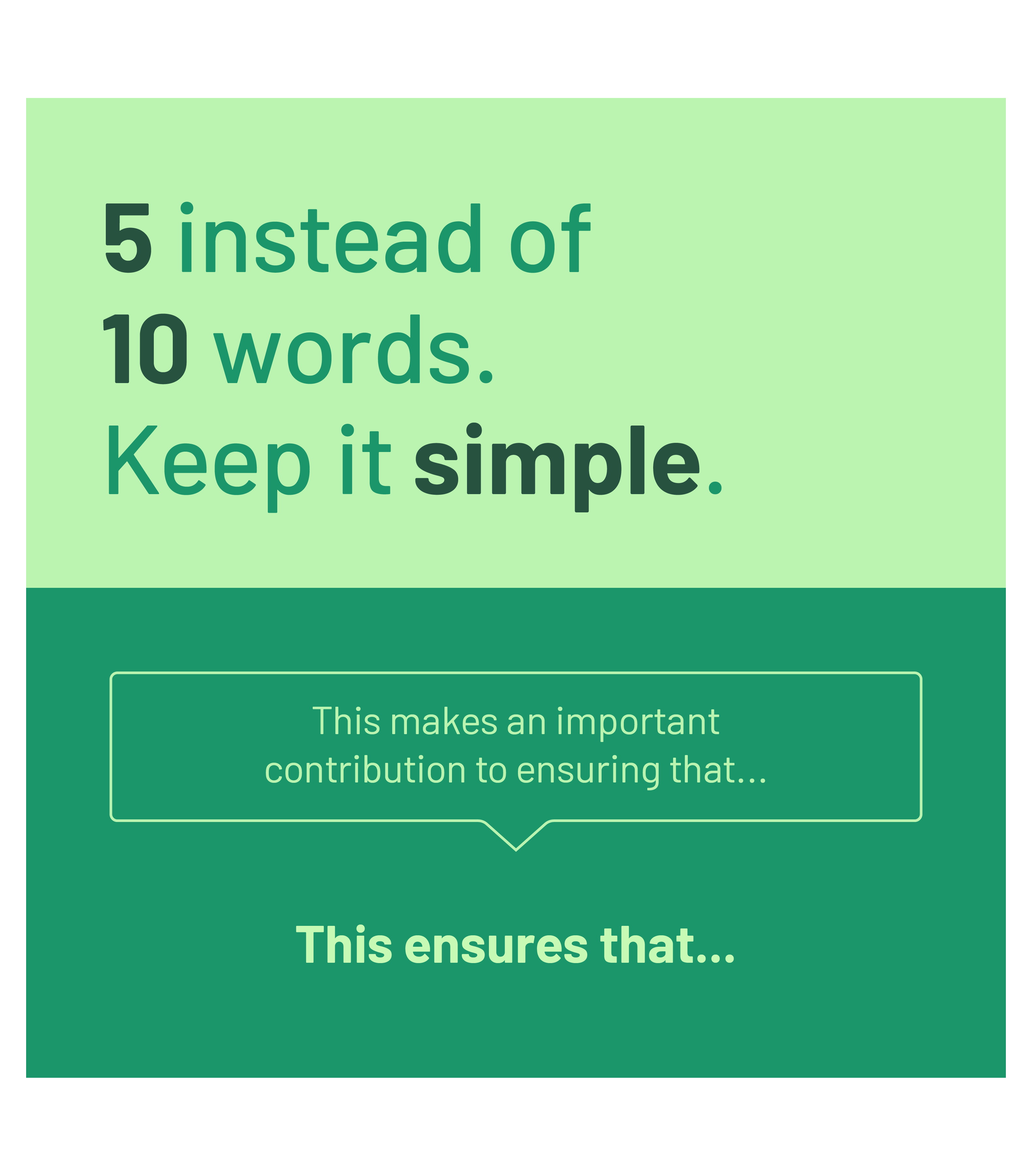 Formulieren Sie Ihre Sätze und Formulierungen so klar und verständlich wie möglich. Streichen Sie Füllwörter oder zu komplizierte Formulierungen.