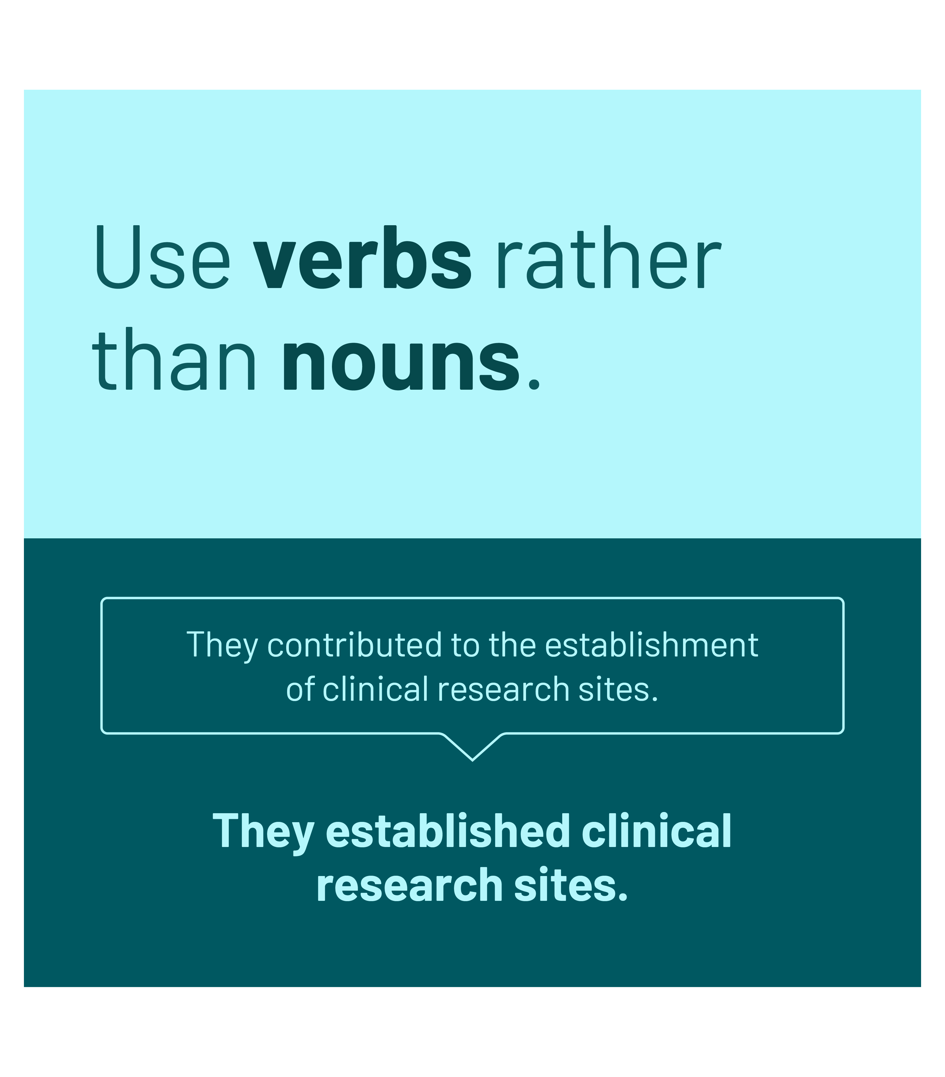 Unser Gehirn verarbeitet Verben leichter als Substantive. Wenn wir Sätze mit Verben schreiben, können wir vor unserem geistigen Auge sehen, wie eine Handlung abläuft. Substantive sind manchmal zu abstrakt oder schwieriger zu verstehen.