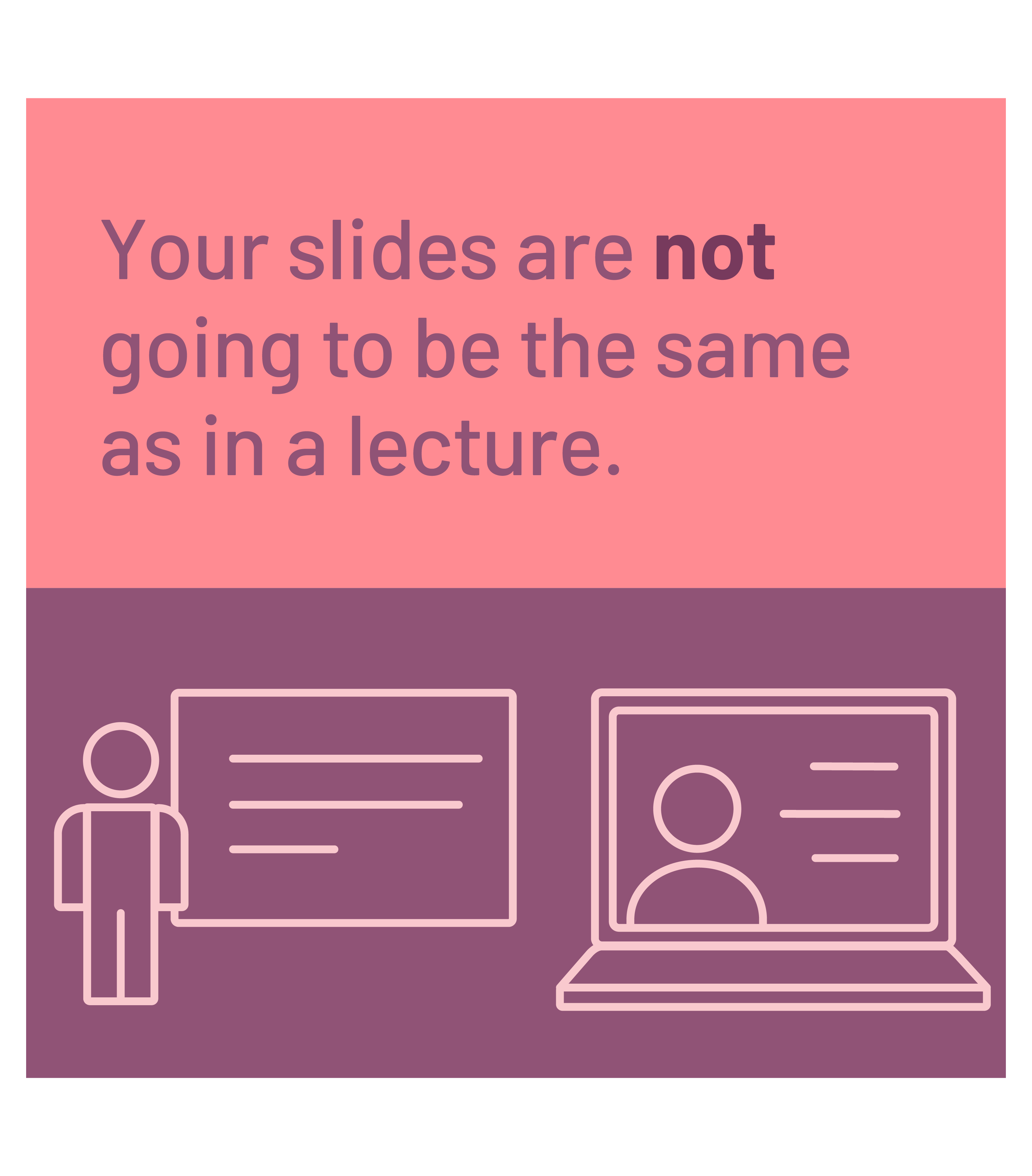 Wenn Sie Folien für einen Vortrag erstellen und sie Ihren Zuhörern in einem Hörsaal zeigen, können die Zuhörer wählen, wohin sie schauen: auf Sie oder auf die Folien. Die Lernenden haben Zeit, die Folien zu lesen, weil Sie sie für längere Zeit stehen lassen können.