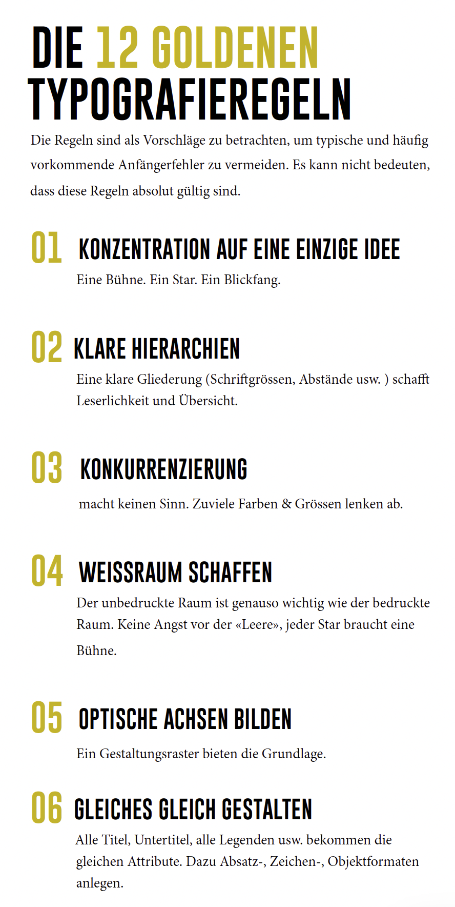 Was früher von einem Schriftsetzer gemacht wurde, übernimmt heute der Grafiker in Form des Desktop Publishings, des Setzen am PC gleich selbst. Auch Laien haben heute relativ einfach Zugang zu professionellen Schriften. Jedoch bedarf es einigen Know-Hows diese richtig zu setzen um ihnen gerecht zu werden. Denn auch wenn das Aufkommen des PCs möglicherweise ein weiterer Meilenstein in der Geschichte der Schrift darstellt, basieren eine Vielzahl an Begriffen und Tricks immernoch aus der Zeit des manuellen Bleisatzes. Diese gilt es zu kennen und auch am PC gekonnt einzusetzen, um ein bewusst gestaltetes Schriftbild zu erreichen.