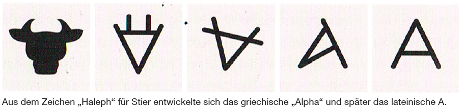 Als Initialzündung für unser heutiges Schriftsystem kann die Schrift der Phönizier bezeichnet werden, welche die älteren Schriftsysteme der Ägypter, Sumerer und Kreter vereinte und heute als Ursprung nicht nur des lateinischen, sondern auch des hebräischen, arabischen und indischen Alphabets gilt. Die Phönizier waren die ersten, die sich komplett von figürlichen Zeichen lösten und ein rein phonetisches Alphabet aus abstrakten Schriftzeichen kreierten.